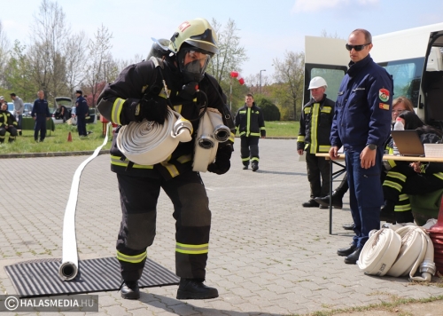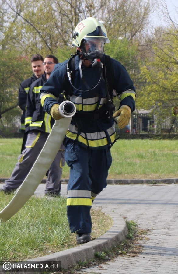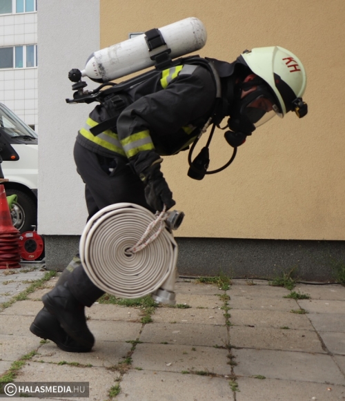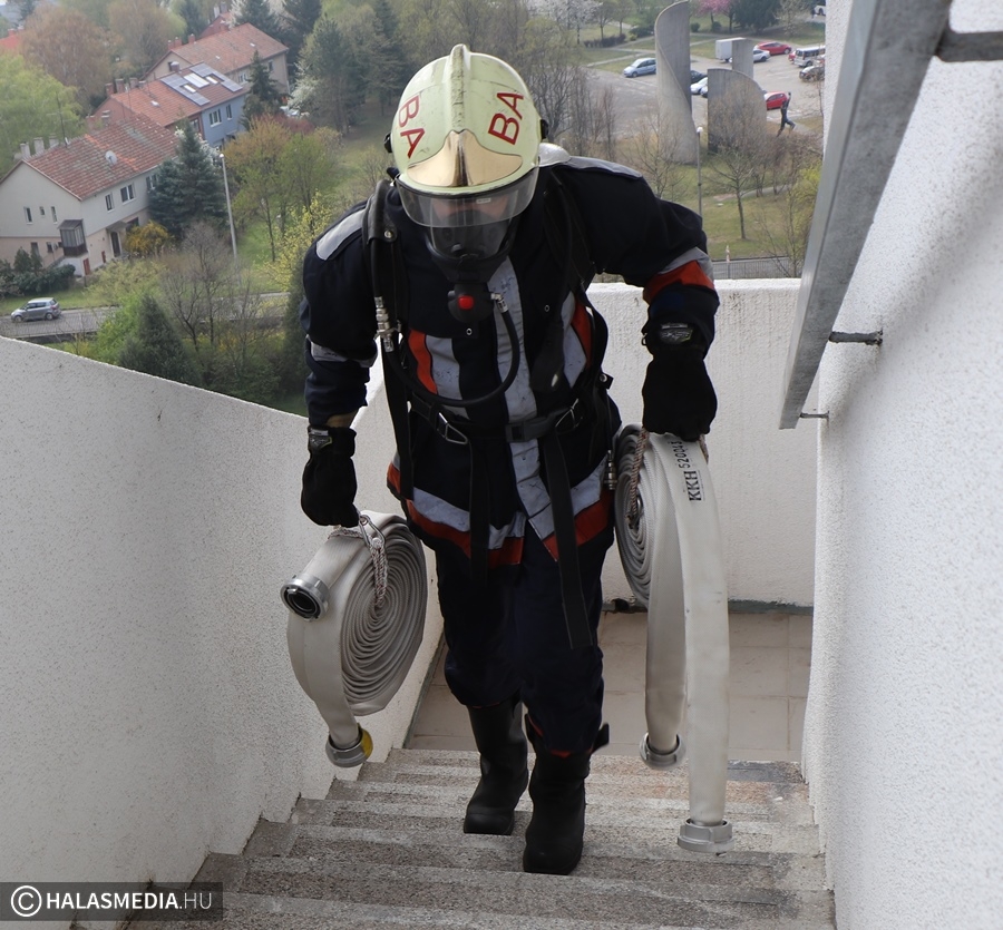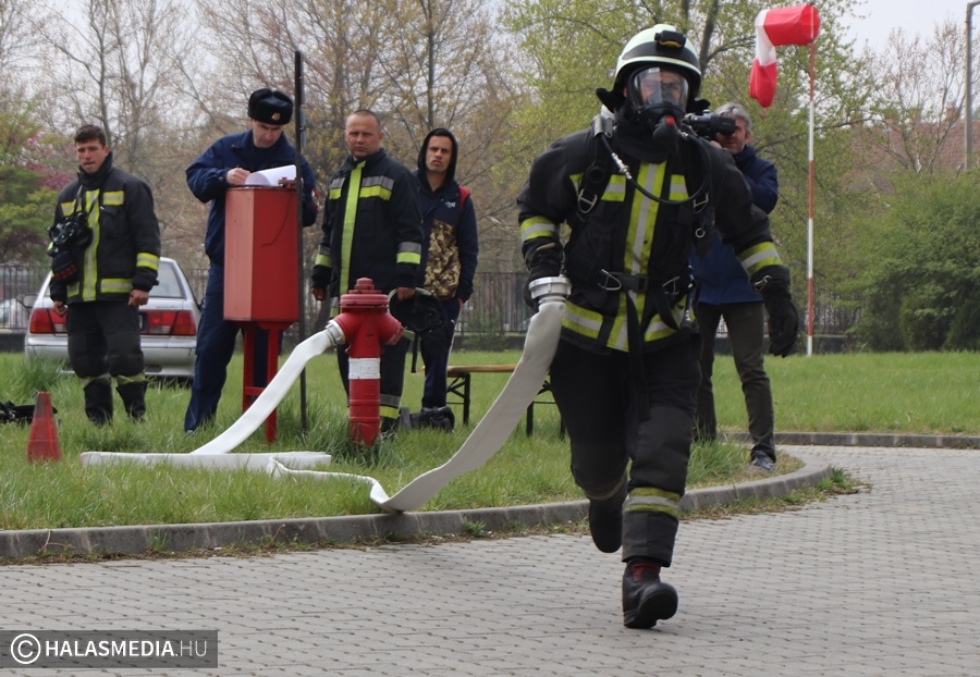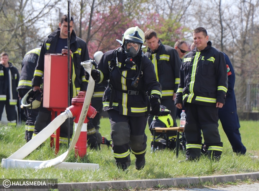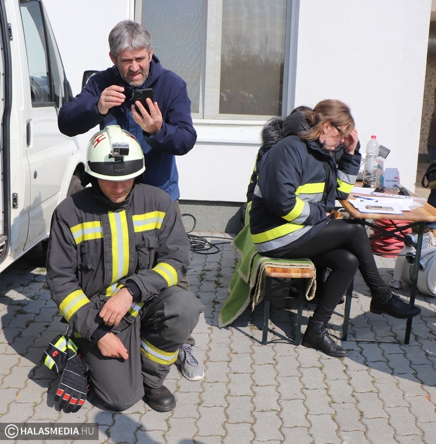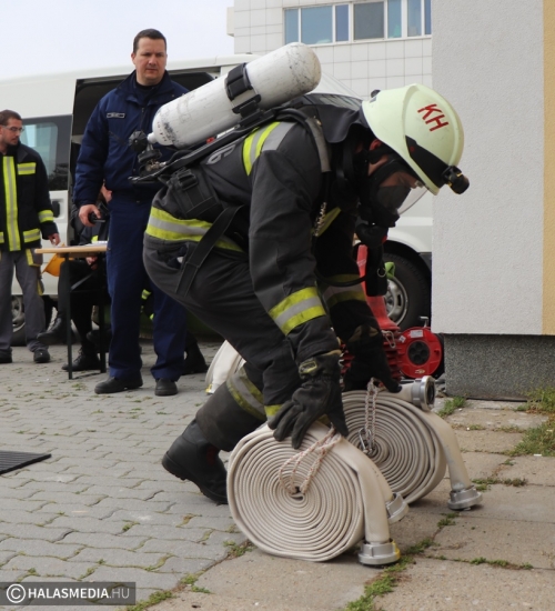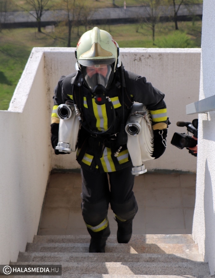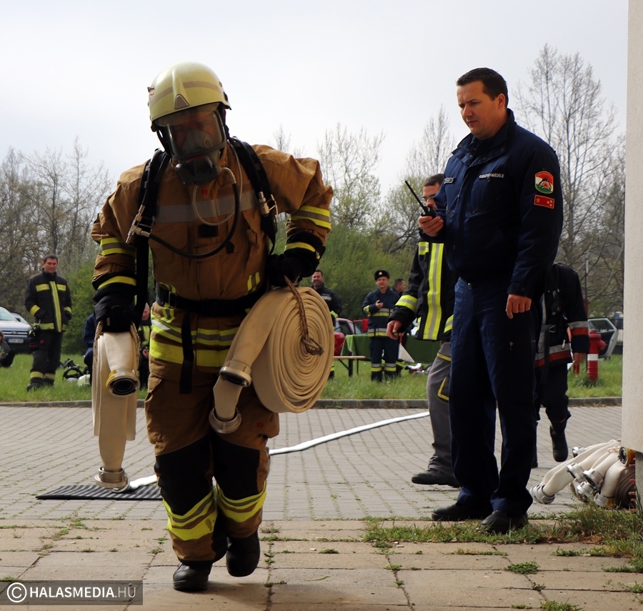 A védőruha, a légzőkészülék, a palack, a sisak, valamint a két tömlő legalább 30 kilónyi plusz terhet jelentett a közel 100 lépcsőfok mellett minden nevezőnek. Az elmúlt hetekben komoly gyakorlás zajlott a tűzoltóságokon, hogy mindenki teljesítse a versenyszámot. A tiszti állomány mellett a Kiskunhalasi Katasztrófavédelmi Kirendeltség vezetője, Babud Jenő ezredes és Gyapjas János ezredes, a Bács-Kiskun Megyei Katasztrófavédelmi Igazgatóság igazgatóhelyettese is vállalta a kihívást. Egyetlen női versenyzőként pedig Hölzl Krisztina főhadnagy öltött magára védőruhát és nekivágott a kilenc emeletnek.