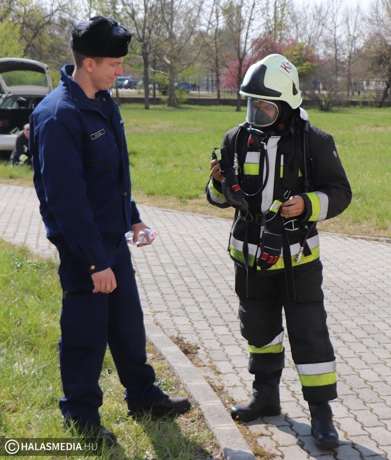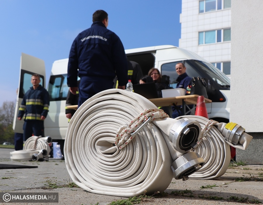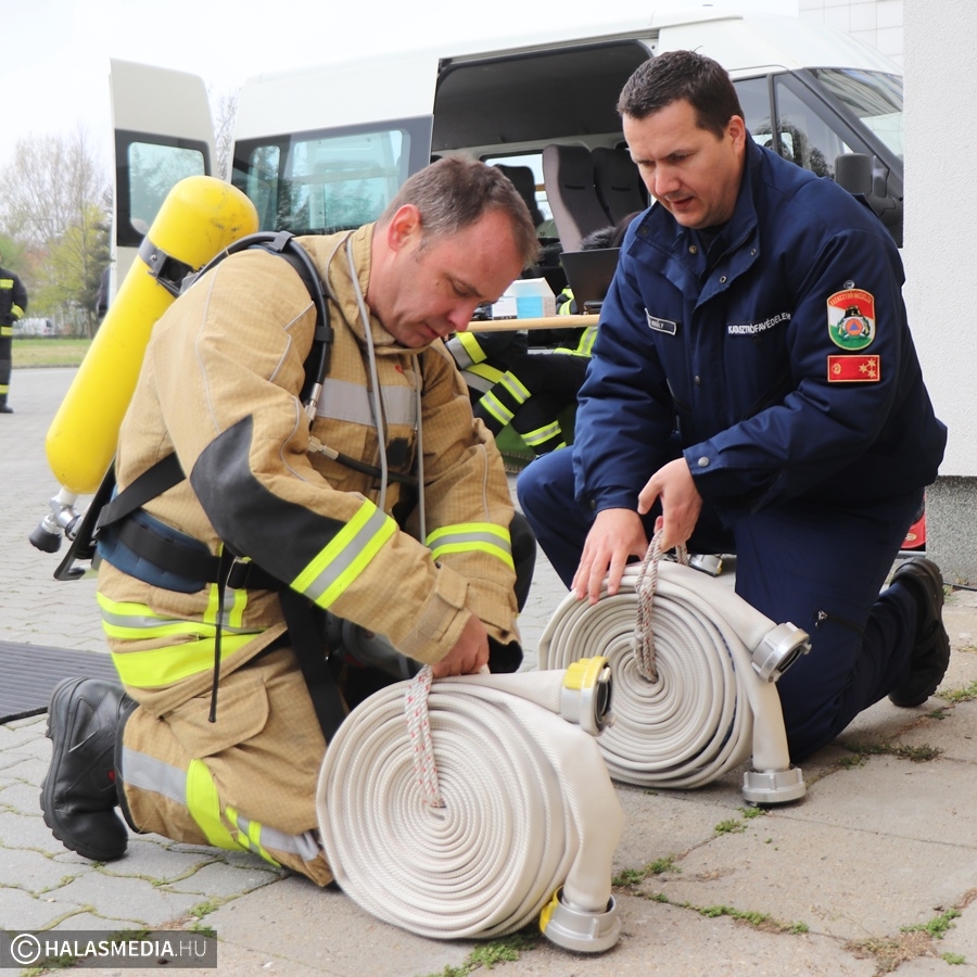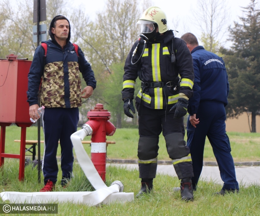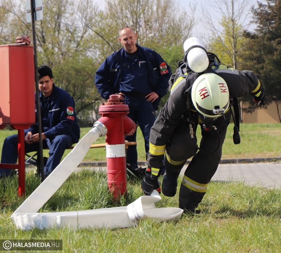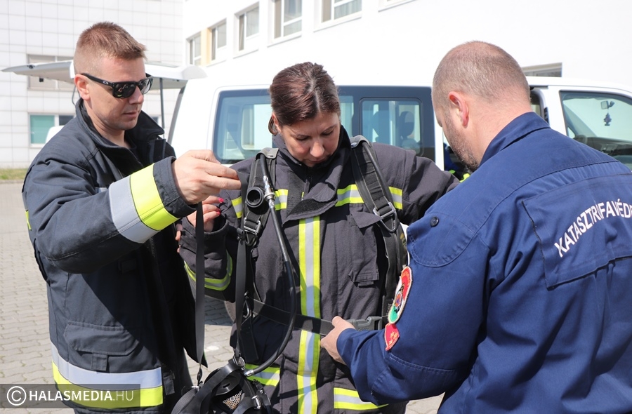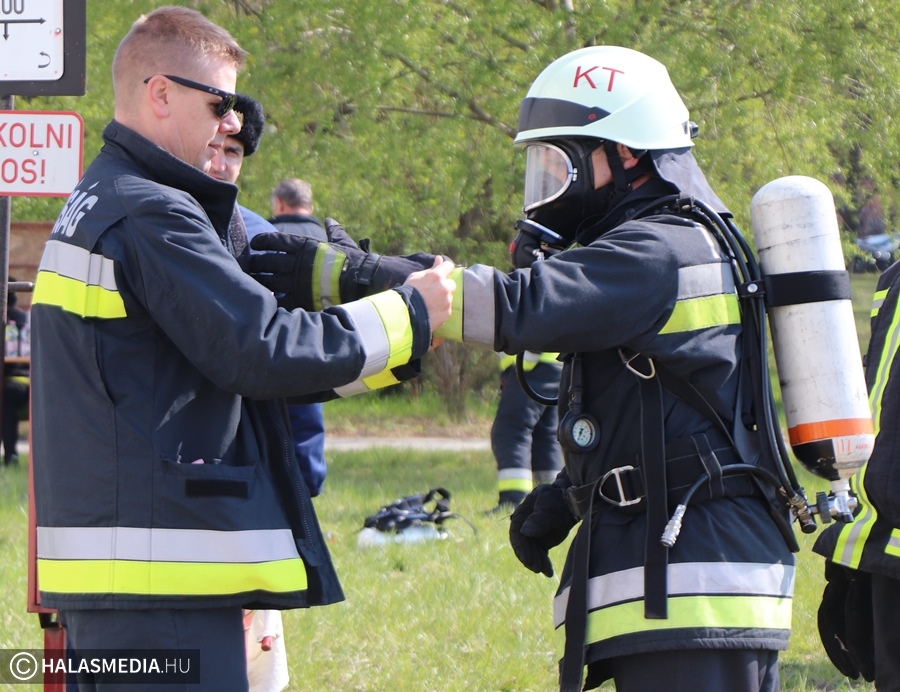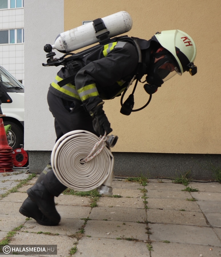 A védőruha, a légzőkészülék, a palack, a sisak, valamint a két tömlő legalább 30 kilónyi plusz terhet jelentett a közel 100 lépcsőfok mellett minden nevezőnek. Az elmúlt hetekben komoly gyakorlás zajlott a tűzoltóságokon, hogy mindenki teljesítse a versenyszámot. A tiszti állomány mellett a Kiskunhalasi Katasztrófavédelmi Kirendeltség vezetője, Babud Jenő ezredes és Gyapjas János ezredes, a Bács-Kiskun Megyei Katasztrófavédelmi Igazgatóság igazgatóhelyettese is vállalta a kihívást. Egyetlen női versenyzőként pedig Hölzl Krisztina főhadnagy öltött magára védőruhát és nekivágott a kilenc emeletnek.