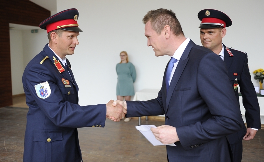 Elismerést vehetett át Kollár Csaba főhadnagy, a halasi tűzoltóság rajparancsnoka. Kollár Csaba főhadnagy 2002. április 1-jén szerelt fel a Kiskunhalasi Hivatásos Tűzoltó-parancsnokságra, beosztott tűzoltónak. Elöljárói javaslatára középfokú szakmai végzettséget szerzett, majd 2009-ben fejezte be főiskolai tanulmányait. Emberi és szakmai hozzáállásának eredményeként rajparancsnoknak nevezték ki. Felszerelése óta számos versenyen szerzett dobogós helyezéseket, kiemelkedő tagja volt a megyei-, országos tűzoltó-sportversenyeken résztvevő versenycsapatnak. Az elmúlt évek legjobb horoglétrás versenyzője még országos szinten is. Versenysporttól való visszavonulását követően magára vállalta a tűzoltósport versenycsapatának felkészítését és vezetését is, melynek köszönhetően továbbra is szép eredményeket ér el a kiskunhalasi csapat. Rendkívül szorgalmas hozzáállása, precíz és kitartó munkája alapján példaként állítható a tűzoltó kollégák elé.