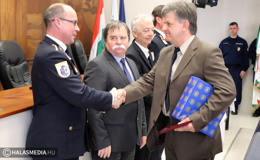 Az ünnepi állománygyűlésen kitüntetések átadására is sor került. Megemlékeztek a kiskunhalasi Benke Lászlóról, a nyugállományú ezredes sokat tett a Bács-Kiskun Megyei Polgári Védelmi Szövetségért. A Bács-Kiskun Megyei Katasztrófavédelmi Igazgatóság igazgatója Bács-Kiskun megye polgári védelme érdekében nyújtott kimagasló teljesítménye elismeréseként emléktárgyat és oklevelet adományozott Visnyei Miklósnak, Zsana polgármesterének.