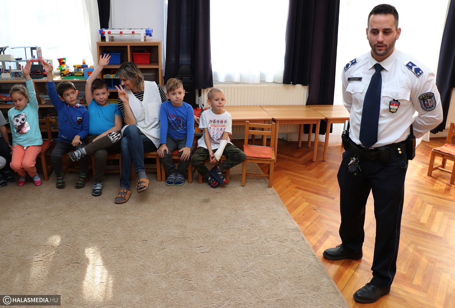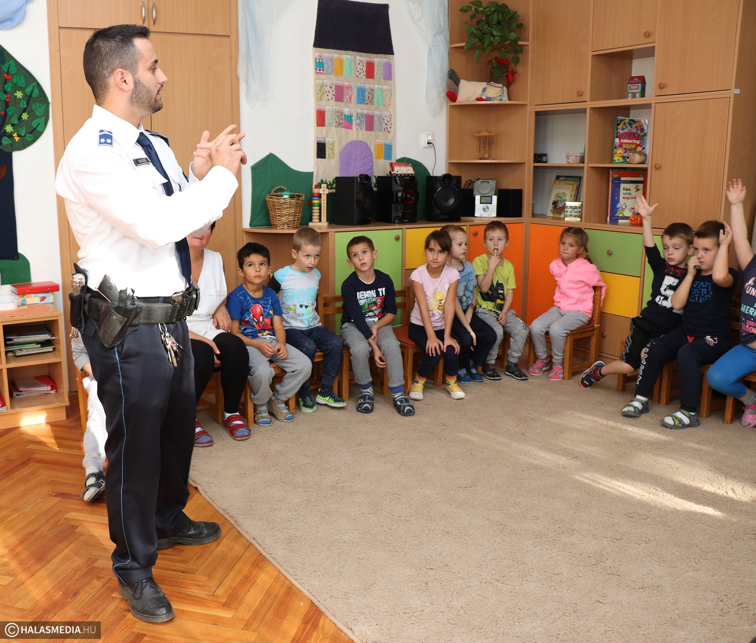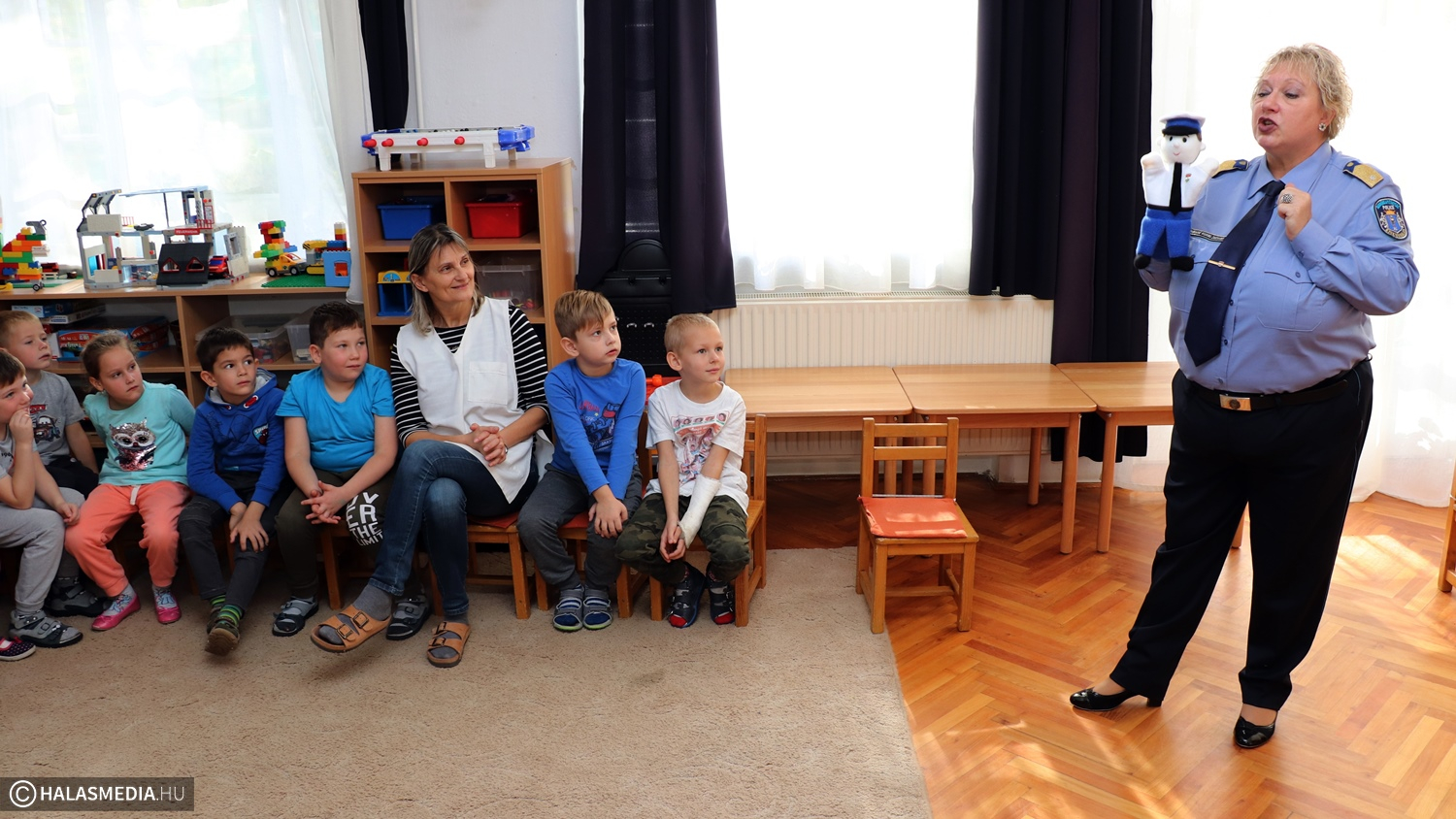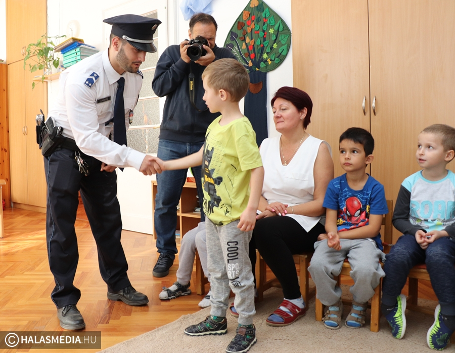 Kedden délelőtt rendőrök járták a halasi óvodákat. Az Ovi-Zsaru Program keretében keresték fel a helyi intézményeket. A gyermekek bűnmegelőzési programja a fiatalok életkori sajátosságainak figyelembevételével játékos formában – bábok segítségével – készíti fel a nagycsoportosokat a rájuk leselkedő veszélyhelyzetek felismerésére és a helyes magatartás megválasztására. A Vasút utcai kislányokat és kisfiúkat Farkasné Wodring Zsuzsanna őrnagy, a Kiskunhalasi Rendőrkapitányság kiemelt bűnmelegőzési főelőadója és Komlós Gergő törzsőrmester látogatta meg. A vendégeket Barnáné Szabó-Mikor Márta, a Szászorszép Óvodák vezetője fogadta, aki elmondta, örömmel fogadták a rendőrség kezdeményezését.