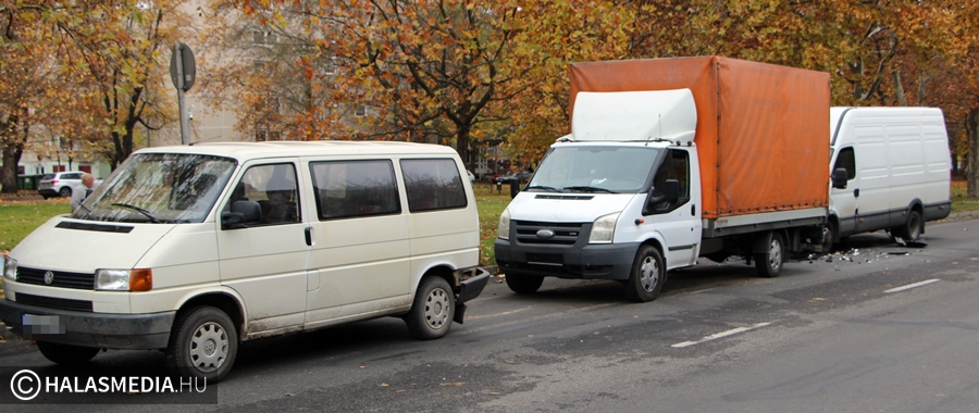 A szakzsargon megfogalmazása szerint utoléréses baleset történt az 53-as főúton, a Park Áruház közelében hétfőn késő délelőtt. Egy Volkswagen Transporter, egy Ford Tranzit és egy Iveco kisteherautó ütközött össze, szerencsére nem sérült meg senki.