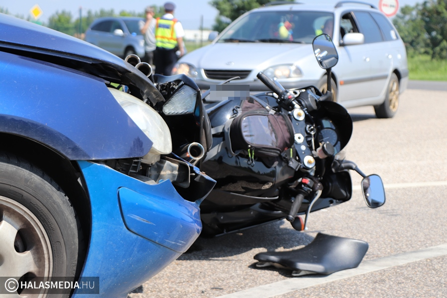 Könnyebb sérüléseket szenvedett az a motoros, aki vasárnap délelőtt szenvedett balesetet az 53-as főút és a jánoshalmi út kereszteződésében. A Yamaha Kunfehértó felől érkezett a csomópontba, ahol megállt, a mögötte jövő autó sofőrje későn észlelte őt és összeütköztek.