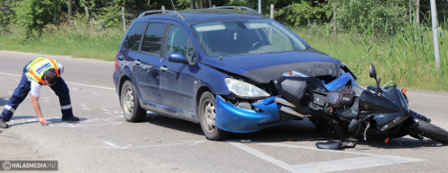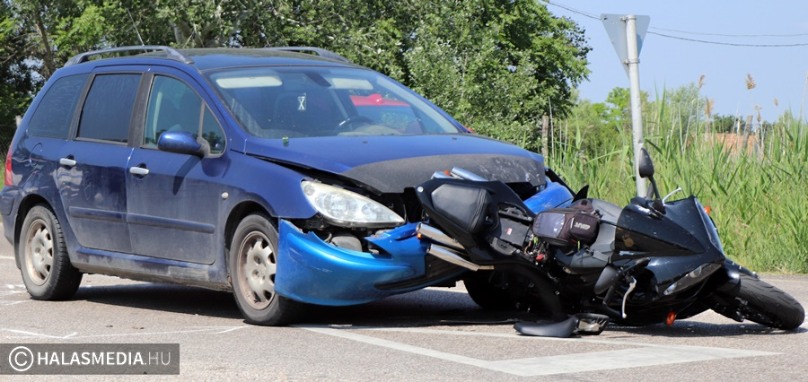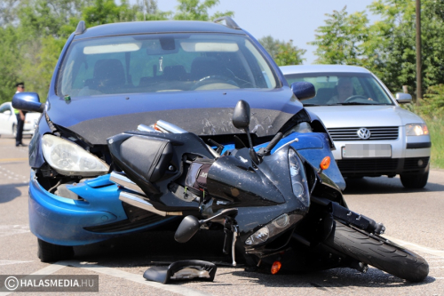 Figyelmetlenség miatt történt baleset vasárnap délelőtt negyed 11 körül Kiskunhalas határában, az 53-as főút és a jánoshalmi út kereszteződésében. Helyszíni információink szerint egy motor és egy személyautó ütközött egymással, előbbi jármű sofőrjének a lába sérült meg. Őt kivizsgálásra a halasi kórházba szállítottak a mentők. A Peugeotban hárman ültek, a fiatal sofőr elmondta, hogy hazafelé tartottak Lajosmizsére, amikor a baleset megtörtént. A Yamaha megállt, a mögötte haladó autó pedig hátulról nekiment. A helyszíni szemle idején rendőri forgalomirányítás volt. A baleset pontos körülményeit a Kiskunhalasi Rendőrkapitányság közlekedésrendészete vizsgálja. Ugyanebben a kereszteződésben történt egy sokkal súlyosabb kimenetelű karambol. 2013. június 22-án egy miskolci motoros ütközött neki az 53-as főúton haladó Fordnak. A kétkerekű jármű sofőrjét mentőhelikopter szállította a kecskeméti megyei kórházba.