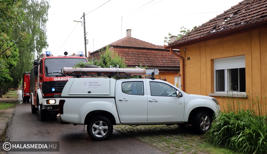 Villámcsapáshoz riasztották a halasi tűzoltókat vasárnap délután, nem sokkal azután, hogy óriási felhőszakadás volt a városban. A jelzés a Szalag utcából érkezett. A helyszínen kiderült, hogy egy családi házban pusztított a villám. A tetőt szinte megemelkedett, a cserepek szétcsúsztak, némelyik a járdára zuhant, a vezetéket elégtek falban. A lakók nagyon megijedtek, de szerencsére nem sérültek meg. A tűzoltók után nem sokkal a gázszolgáltató és az áramszolgáltat szakemberei is megérkeztek az Alsóvárosi utcába. Több ingatlanban nem volt áram, egy gázcső pedig kilyukadt, feltehetően ez is a villámcsapás következménye.