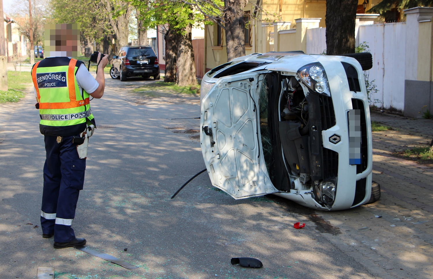 A Renault fiatal sofőrje a kezén szenvedett hámsérüléseket, nem is kellett kórházba szállítani. A tűzoltók áramtalanították a felborult autót és ők segítettek a talpra állításában is. Az anyagi kár jelentős. A Henger és a Csap utca kereszteződésében élő férfi értesítette a hatóságokat. Ő azt mondta, néhány évvel ezelőtt már volt egy hasonló baleset, szinte méterre pontosan ezen a helyen,