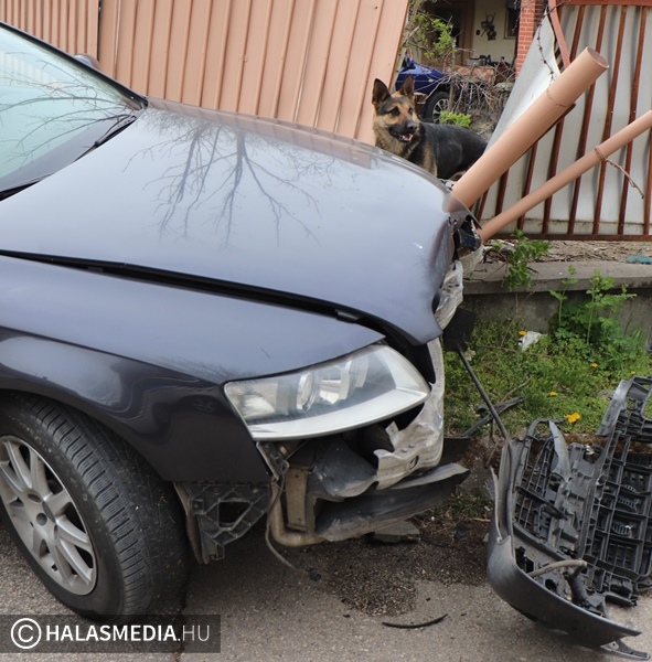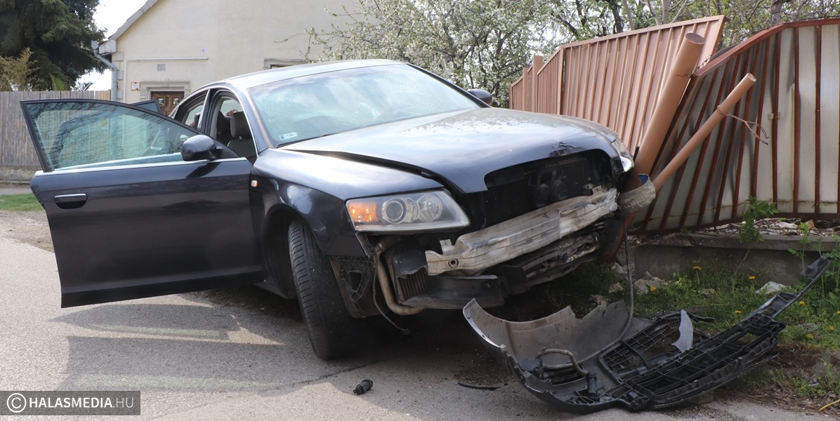 Kerítésbe csapódott az Audi, az utasok elszaladtak a helyszínről (galéria)
