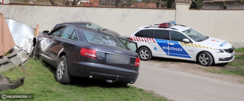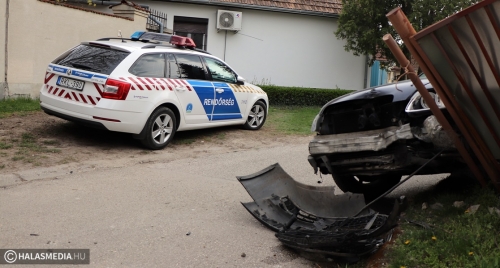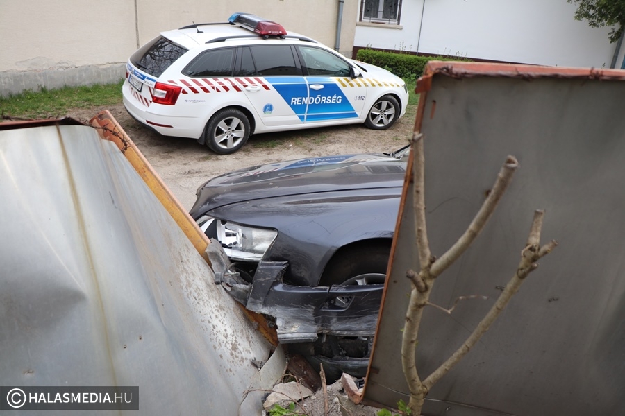 Hárman ültek abban az Audiban, amely kerítésnek csapódott csütörtökön délután fél három körül Kiskunhalason, a Sólyom utcában. Az autó sofőrje a kötelező haladási irányt figyelmen kívül hagyva, nagy sebeséggel közlekedett a szűk utcában, amikor elvesztette uralmát a lóerők felett. Egy férfi, egy nő és egy kisgyermek elszaladt a helyszínről.