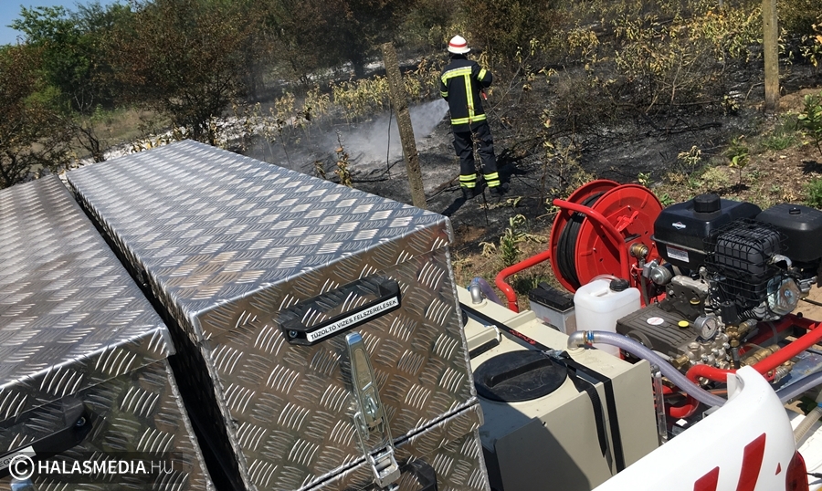Mintegy két hektáron égett a az aljnövényzet Kiskunhalas külterületén, a Rekettyepusztai részen, a Keceli út közelében. A kiskunhalasi tűzoltóságra háromnegyed 12-kor futott be a riasztás. A bejelentő szerint a lángok veszélyeztettek egy karámot is. A két járművel helyszínre érkező egység három vízsugárral és kéziszerszámokkal körülhatárolta, majd eloltotta a tüzet. Munkájukat segítette egy erőgép, amellyel megakadályozták a tűz terjedését a karám és az égő bozótos közötti területen. Az utómunkálatokban közreműködtek a Dél-Magyarországi Tűzoltó- és Technikai Mentő Egyesület önkéntes tűzoltói is. A tűzben károsodott egy áramszekrény, ezért értesítették a szolgáltatót.