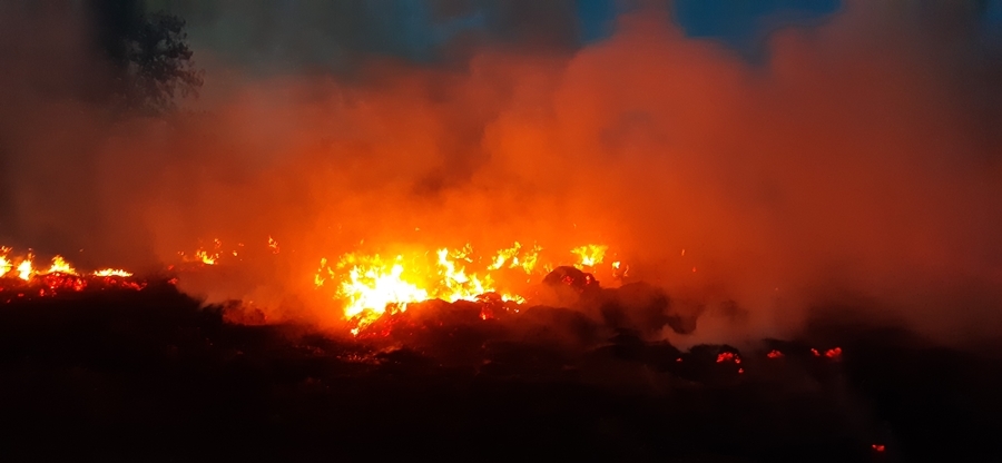 Kigyulladt egy kamion és 80 körbála Zsanán