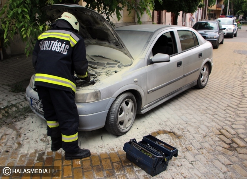 Füstölni kezdett egy Opel motortere szerdán kora délután Kiskunhalason, a Kossuth utcán. A fiatal sofőr nem veszítette el a lélekjelenlétét, félreállt az Árpád utcában egy közeli üzletből tűzoltó-készüléket kért, majd tárcsázta a 112-es segélyhívót.