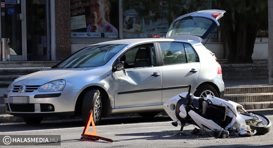 Tisztázatlan körülmények között ütközött össze egy Volkswagen Golf és egy motor Kiskunhalason, a Kossuth utcán. A baleset során a motoros megsérült, mentővel a halasi kórház sürgősségi osztályára szállították.
