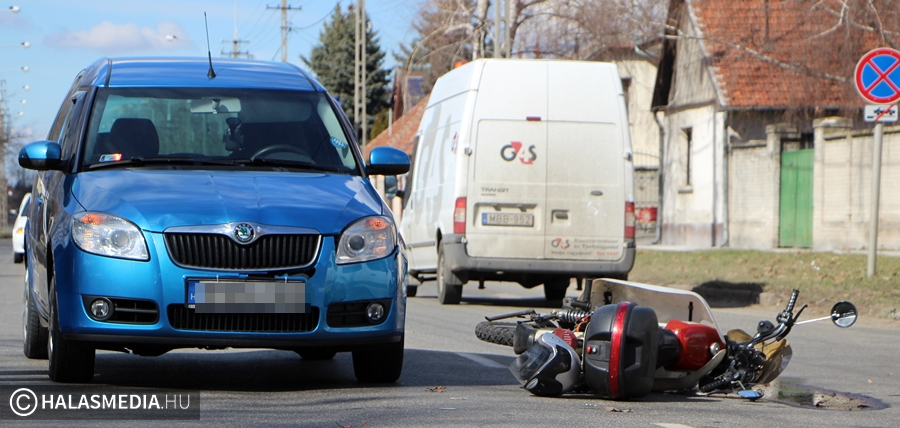 Baleset történt nem sokkal 12 óra után Kiskunhalason, az 53-as főút és Bajza utca kereszteződésében. A helyszíni információk szerint egy motoros jött a csomópontba a Bajza utca felől és nem adott elsőbbséget a neki balról érkező Skodának. A Simson vezetője az úttestre zuhant, mentőt hívtak hozzá. Eszméleténél volt, sérülésének foka egyelőre nem ismert. Úgy tudjuk, hogy a motoros elismerte a felelősségét. A helyszínelés idején félpályán haladt a forgalom.