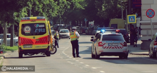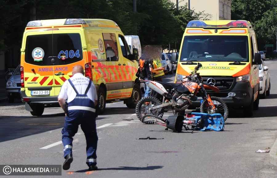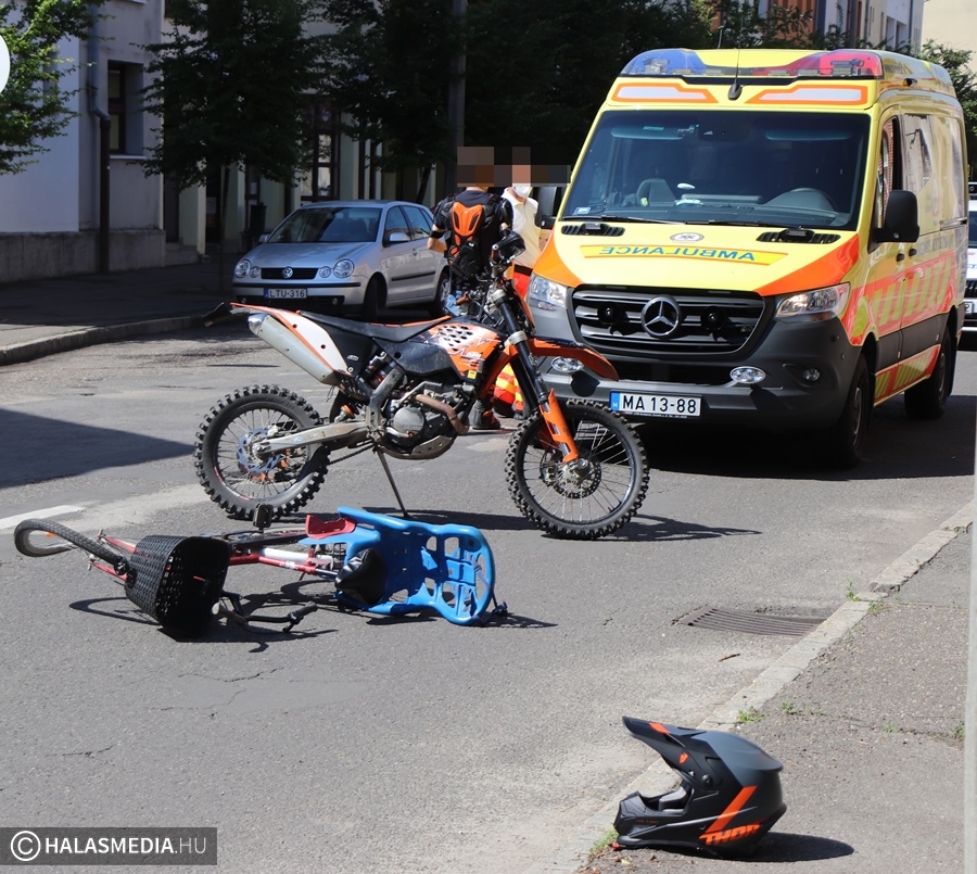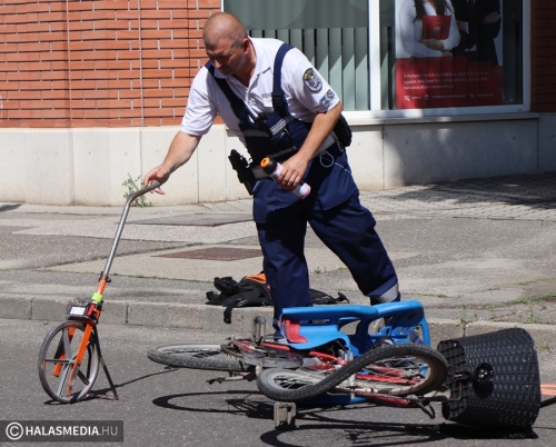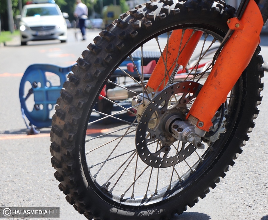 Motoros és kerékpáros ütközött Halas belvárosában (galéria)