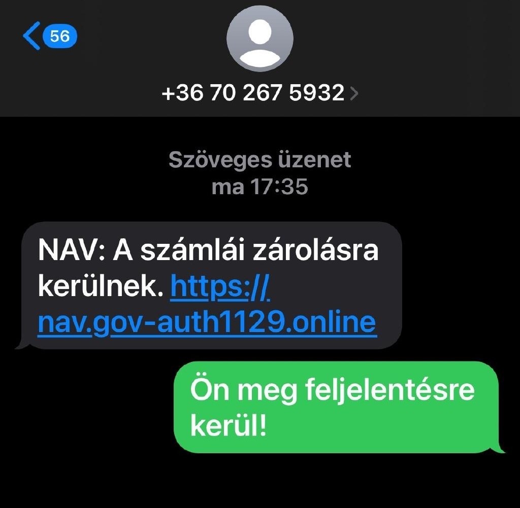 A NAV sosem értesít sms-ben senkit, hogy számláit zárolta. Így, az ilyen üzeneteket azonnal törölni kell, és letiltani a feladó telefonszámát.