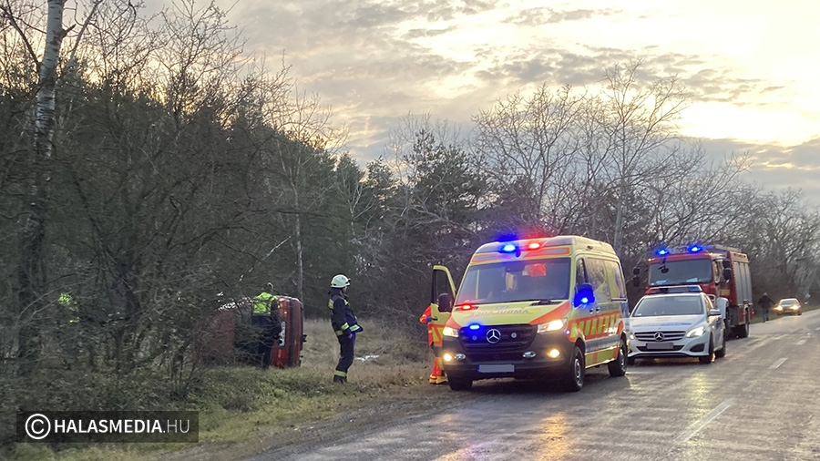 Közúti baleset történt nem sokkal 3 óra után a Kiskunhalas-Szeged közötti útszakasz 9-es kilométerszelvényének közelében. Egy Volkswagen sodródott le az útról és az oldalára borult. A személyautó vezetőjét fejsérüléssel szállították a kiskunhalasi kórházba, akinél felmerült az ittasság gyanúja – jelentette helyszíni tudósítónk Jáger Levente.
