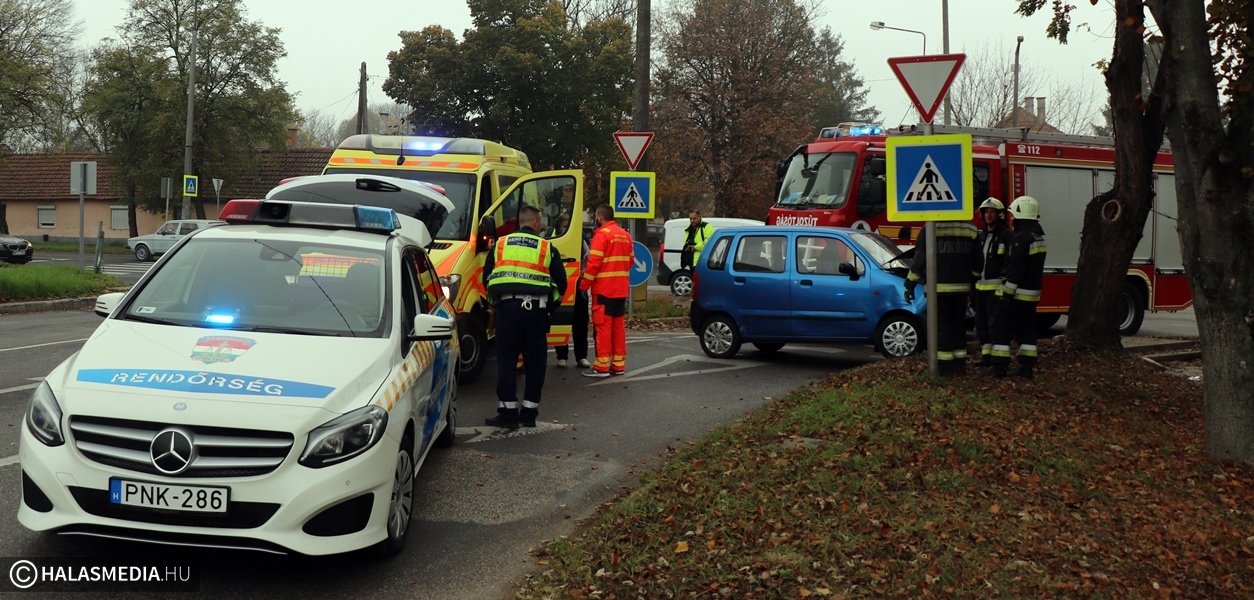 Baleset történt az 53-as főút és a Batthyány utca kereszteződésében csütörtökön délelőtt nem sokkal félé tíz után. A helyszínen megtudtuk: egy Opel érkezett a csomópontba a Szent József-iskola irányából, de nem adott elsőbbséget a temető felől közeledő Suzukinak és összeütköztek. A vétlen jármű sofőrjét a helyszínre érkező mentők kivizsgálásra a kórházba szállították. A halasi tűzoltók segítségére is szükség volt, ők áramtalanították a két járművet. A helyszínelés félpályás útzár mellett zajlott, a forgalmat rendőrök irányították. A karambol pontos körülményeit a Kiskunhalasi Rendőrkapitányság közlekedésrendészete vizsgálja.