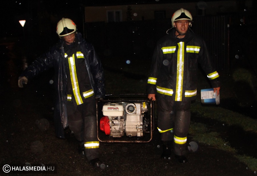 Az éjfél körül kezdődő özönvízszerű csapadék nyomán egymás után érkeztek a lakossági bejelentések a megyei katasztrófavédelemhez, illetve a helyi tűzoltóságra is. Rövid időn belül tíz jelzést kaptak és ez a szám percről percre nőtt. A Kertvárosban, a Zsigray Julianna utcában, a Tormássy utcában, az Alsóvárosban a Kármán utcában, a belvárosban pedig a Szilády Áron utcában okozott gondot a rengeteg esővíz az első jelentések szerint. A halasi tűzoltók több járművel dolgoztak és ahol kellett, ott nagyteljesítményű szivattyúkat vetettek be. Az Erzsébet királyné téren egy autó sárba ragadt, ott is szükség volt a segítségre. A Fazekas Mihály utcában is több olyan ingatlan volt, ahol udvarokat, garázsokat öntött el a víz.