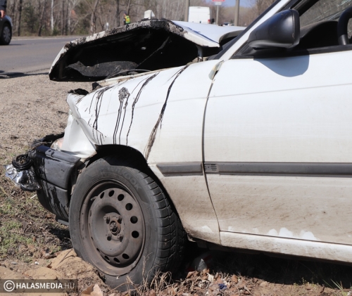 Ráfutásos baleset Kiskunhalas közelében: megsérült az Opel utasa (galéria)