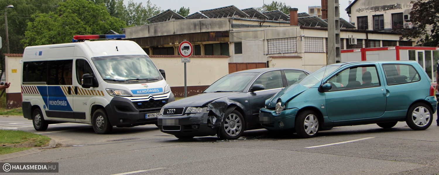 Baleset történt a Tó utca és a Szabadkai út kereszteződésében. Egy balra kanyarodó Renault ütközött neki az egyenesen haladó Audi bal elejének. A vétkes sofőr elismerte a felelősségét.