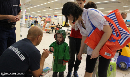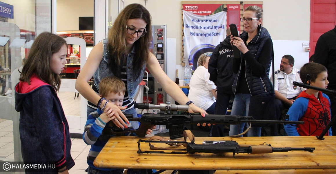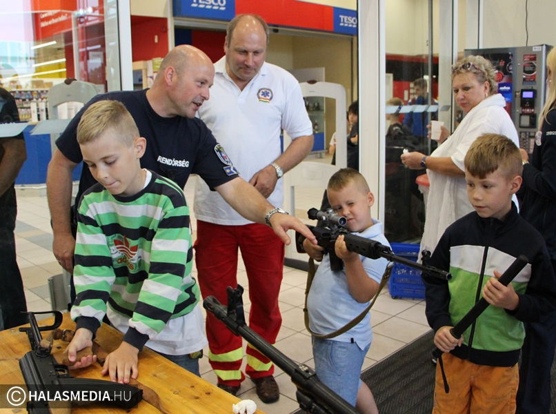 Kora reggel még igen kevés volt az esélye annak, hogy megtartják a Kiskunhalasi Rendőrkapitányság és a kiskunhalasi Tesco közös szervezésű Családi Napját. A szakadó eső és a további csapadékot ígérő felhőzet nehéz feladat elé állította a rendezőket. - Döntést kellett hoznunk a rendezvénnyel kapcsolatban. Az áruház vezetése rugalmasan és pozitívan állt hozzá a kérdéshez, így az előcsarnokban meg tudtuk csinálni a programot, mert erre más időpontban nem lett volna lehetőség - mondta érdeklődésünkre Farkasné Wodring Zsuzsanna őrnagy, kiemelt bűnmegelőzési előadó. A vásárlók így a délelőtt folyamán bármikor bekapcsolódhatak a rendezvénybe.