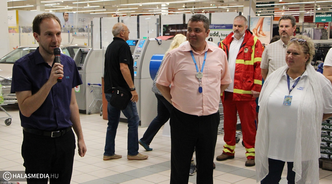 Az ünnepélyes megnyitón Budai László áruházigazgató, dr. Vaslóczki Ferenc alezredes, Kiskunhalas megbízott rendőrkapitánya, valamint Farkas Dániel alpolgármester köszöntötte a megjelenteket. A délelőtt folyamán bepillantást nyerhettek az érdeklődők a Kiskunhalasi Birkózó Club edzésébe, láthattak egy kutyás bemutatót Lóránt Gábor és hűséges társa Hektor közreműködésével. A Kiskunhalasi Egészségvédelmi Iroda is kitelepült, a kiskunhalasi védőnök reform ételeket kínáltak, de ott volt a Vöröskereszt kiskunhalasi szervezete és a Családsegítrő Szolgálat is. A gyermekek és szüleik megismerkedhettek a rendőrség fegyvereivel, de be lehett ülni a tűzoltó- és a mentőautóba. A parkolóban ingyenes szélvédőjavításra volt lehetőség, de működött a Nemzeti Közlekedési Hatóság mobil műszaki állomása is.