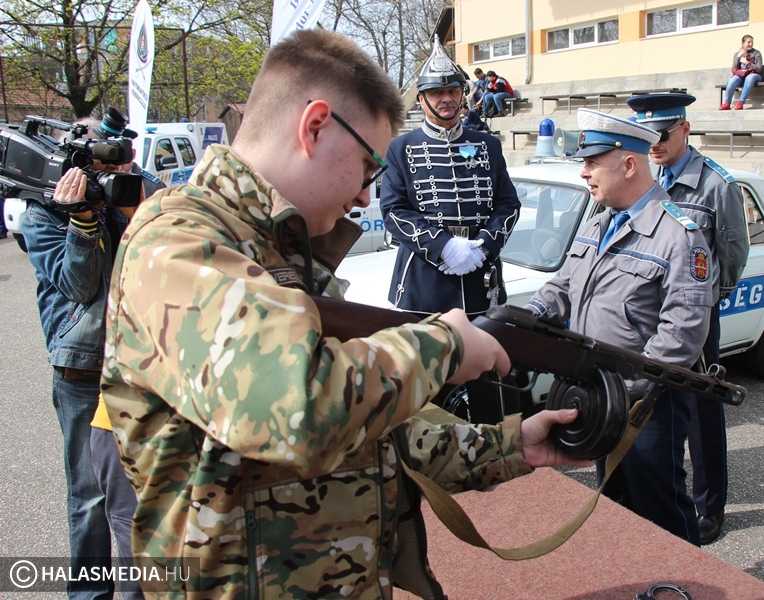 Ismét a Kiskunhalasi Szakképzési Centrum Dékáni Árpád Technikuma volt a házigazdája a Rendőrségi Roadshow-nak. - Nagyon örülünk annak, hogy Kiskunhalas ad helyet Rendőrségi Roadshow-nak, amelyet a Rendőrség Oktatási és kiképző Központja már három éve szervez. Ennek a programnak pont az a lényege, hogy azokba a középiskolákba látogatunk el, amelyekben a rendészeti képzés fontos szerepet kap. A diákoknak ilyenkor „életszagú” bemutatókat szervezünk, amelyekkel igyekszünk felkelteni az érdeklődést a rendőri hivatás iránt. Másrészről az általános iskolások számára mutatjuk be a rendészeti képzés értékeit- fogalmazott Pinczésné Kiss Klára ezredes, a Rendőrségi Oktatási és Kiképző Központ megbízott igazgatója.