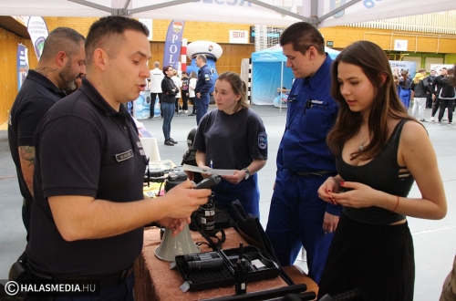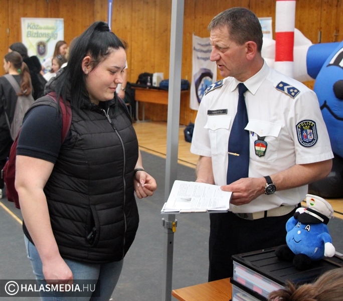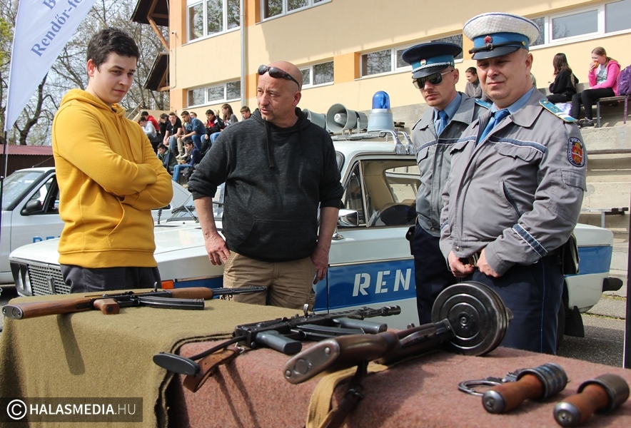 Több száz diák fordult meg a Rendőrségi Roadshow programjain, amelynek a házigazdája ezúttal a Kiskunhalasi Szakképzési Centrum Dékáni Árpád Technikuma volt. A halasi középiskola a rendészeti képzésben az élen jár, a legjobbak közé tartozik, éppen ezért volt itt a rendezvény. Látványos bemutatók mellett az érdeklődők megismerkedhettek a rendszeresített eszközökkel, de néhány korabeli rendőrautó, egyenruha segítségével időutazáson vehettek részt.