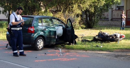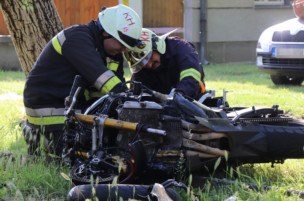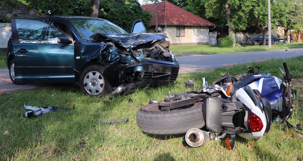 Motor és autó karambolja a Jókai utcán: mentőhelikoptert riasztottak a sérültért (galéria)