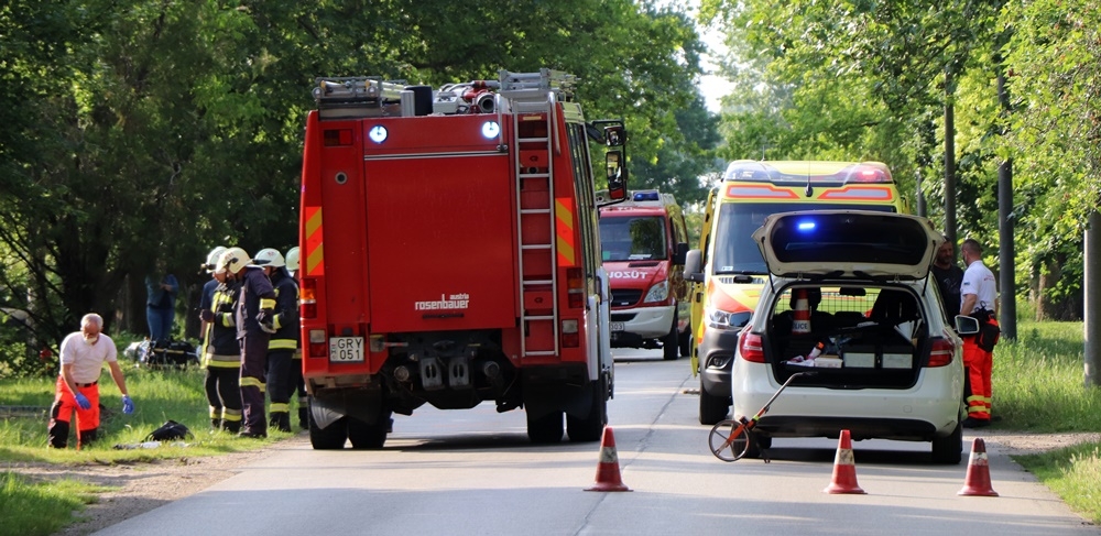 Nem sokkal öt óra után súlyos baleset történt a Jókai utcán. Egy Volkswagen sofőrje otthona felé akart balra kanyarodni, amikor a Kőrösi út felől érkező Suzuki motorral ütközött. A baleset következtében a motoros a vízelvezető árokba repült és súlyos, életveszélyes végtagsérüléseket szenvedett. A helyszínre érkező két tűzoltóautó és két mentőautó személyzete azonnal megkezdte a mentést, teljes útzár mellett. Nem sokkal később egy beteget szállító esetkocsi személyzete is a sérült segítségére volt.