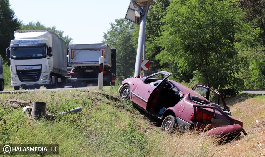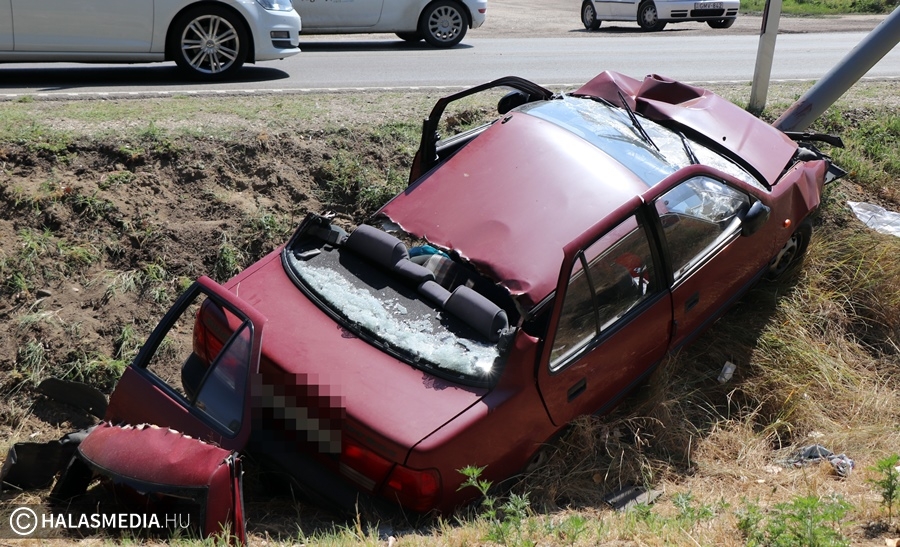 Súlyos, életveszélyes sérüléseket szenvedett az a sofőr, aki Suzukijával letért az 53-as főútról az árokba és egy oszlopnak ütközött. A balesethez két mentőautó érkezett Kiskunhalasról, valamint riasztották a halasi tűzoltókat is, akik az egyik hátsó ajtó levágásával és a tető felnyitásával szabadították ki az idős férfit a roncsból. Miután stabilizálták az állapotát, kórházba szállították.