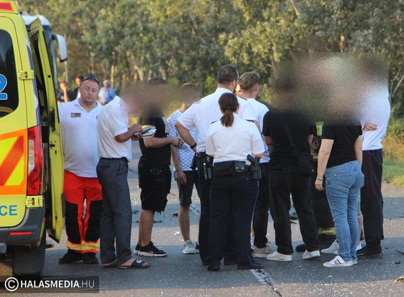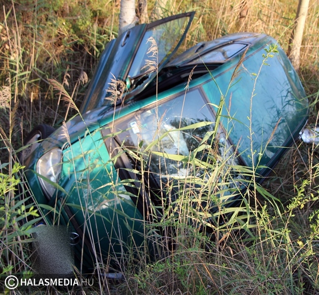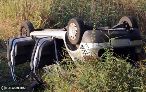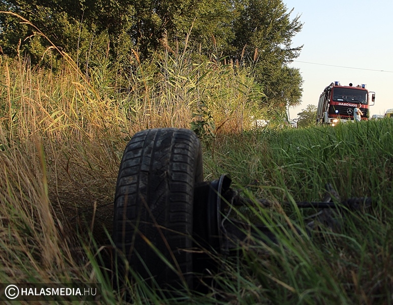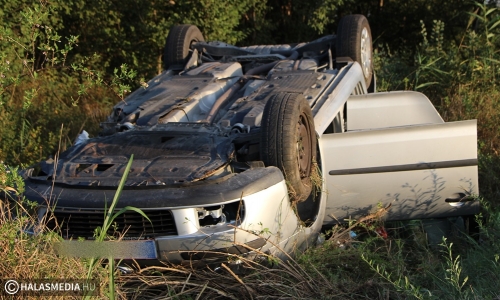 Eddig tisztázatlan körülmények között ütközött össze, majd csapódott árokba két autó szombaton kora reggel Kiskunhalas határában. Hat óra körül a tompai határátkelő irányából érkező, osztrák rendszámú VW Golf egy kanyar után összeütközött a Kiskunhalas felől érkező Mercedesszel. Mindkét jármű az árokba csapódott. Az ütközés erejét jól mutatja, hogy a VW futóműve egyik első futóműve kiszakadt a helyéből, alkatrésze több tíz méteres körzetben szóródtak szét.