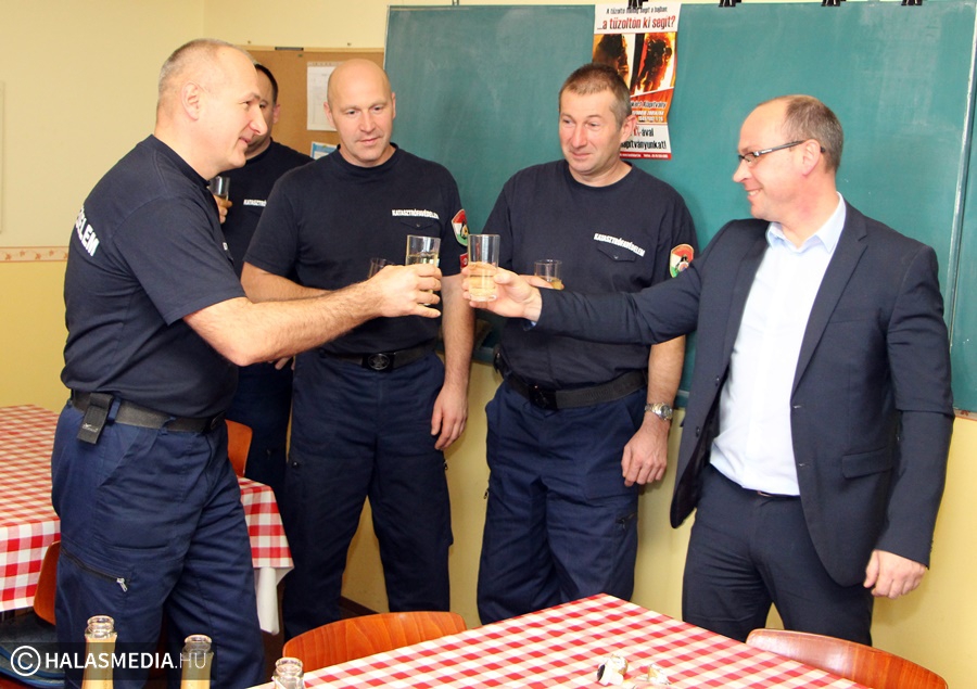 Az igazgatót Orbán Balázs alezredes, Kiskunhalas tűzoltóparancsnoka fogadta. Rajmond Viktor híradóügyeletes pedig jelentette, hogy eddig nem történt rendkívüli esemény. A szolgálati csoport tagjai a tanteremben várták a vendéget. Dr. Farkasinszki Lóránt köszönetet mondott az egész éves munkáért az állománynak és külön hozzátette, hálás a hozzátartozóknak is, akik a biztos hátteret jelentik a tűzoltóknak. Az ezredes szerint a halasi tűzoltók kreatívak, szívósak és legjobbak közé tartoznak nemcsak szakmai területen, hanem a sportban is. Az igazgató elmondta, hogy jövő nyár elején nyílik a kiskunmajsai tűzoltóőrs, amely új kihívásokat jelent majd.