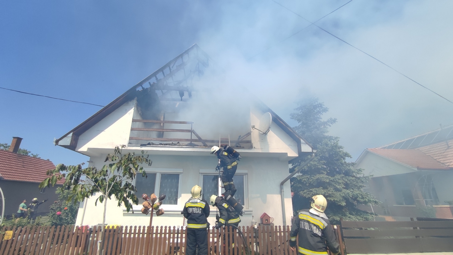 Teljes terjedelmében égett egy családi ház tetőszerkezete Balotaszálláson