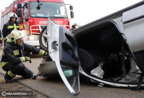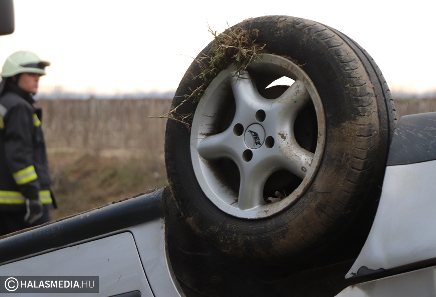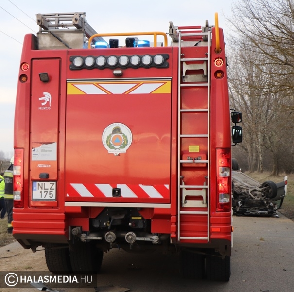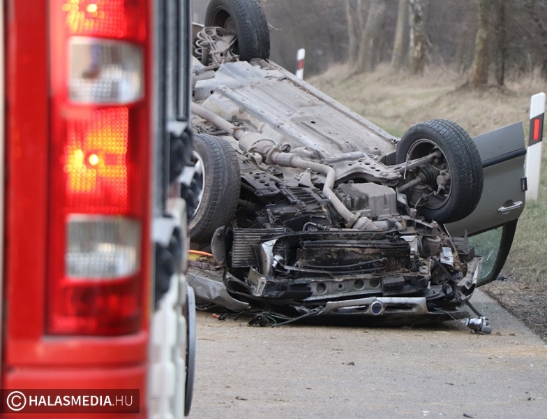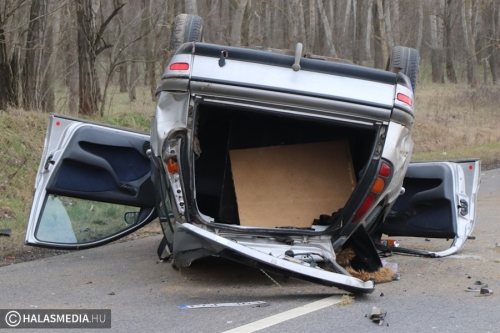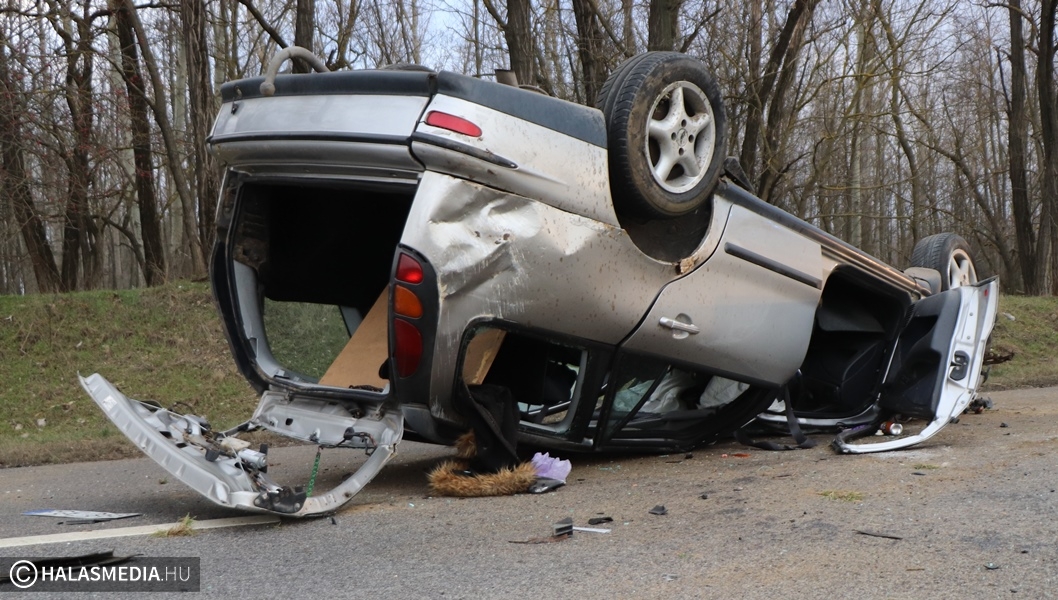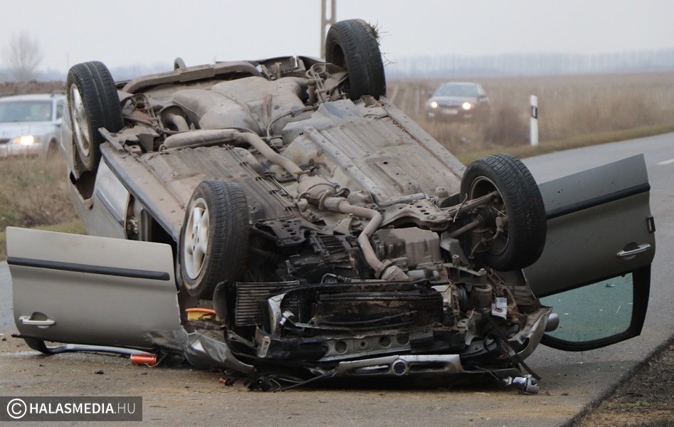 Baleset történt vasárnap délután három óra körül Kiskunhalas és Kiskunmajsa között, az 5402-es úton. Eddig tisztázatlan körülmények között a tetejére borult egy Fiat úgy, hogy elfoglalta az egyik sávot. A helyszínre a mentők mellett a kiskunhalasi hivatásos tűzoltókat is riasztották, akik a műszaki mentést és az áramtalanítást végezték el. Az autóban ketten utaztak, ők önerejükből hagyták el az összetört járművet. Egyiküket, a kiskunhalasi sofőrt kivizsgálásra kórházba szállították.