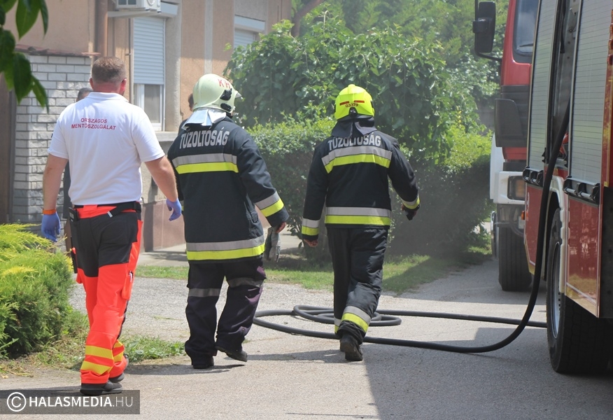 Füst lepte el pénteken délután, háromnegyed egy körül a kiskunhalasi Huszár utcát. A szomszédok észlelték ezt, azonnal hívták a tűzoltókat. A halasi egységek három járművel érkeztek ki a helyszínre, ahol a terasz már lángokban állt, de a tűz átterjedt a konyhára és a tetőszerkezetre is. Az épületben egy édesanya és kisgyermeke tartózkodott, aki ki tudtak jönni az utcára. A mentőket is értesítették, megvizsgálták a nőt, valamint a kisfiát, de nem kellett őket kórházba szállítani.