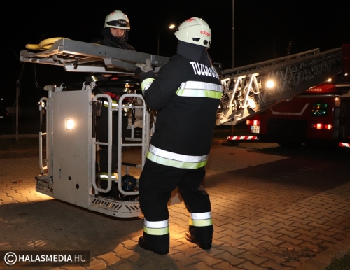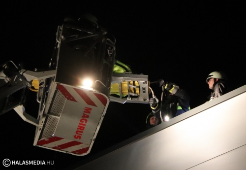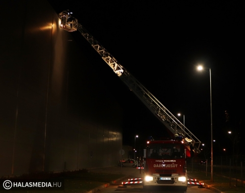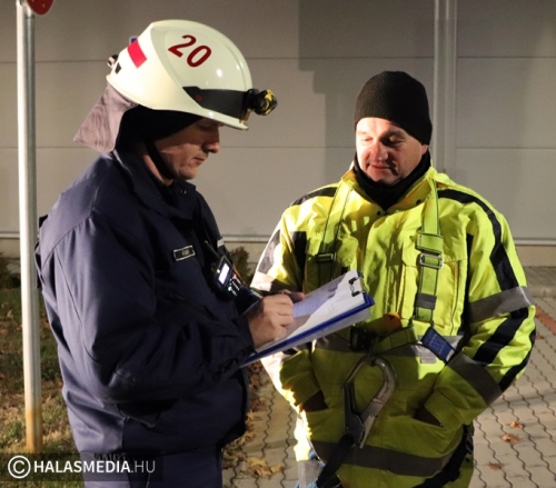 Mentés, tűzoltás, kiürítés is volt azon a parancsnoki ellenőrző gyakorlaton, amelynek a helyszíne a Merkbau Zrt. magasraktára volt. A Kőrösi úti létesítményben tartott próbariadón a kiskunhalasi egységek mellett a kiskunmajsai őrs szolgálatban lévő tagjai is részt vettek. A forgatókönyv szerint a tetőn keletkezett tűz nyomán egy sérült férfit emelőkosaras létra segítségével kellett lehozniuk a magasból.