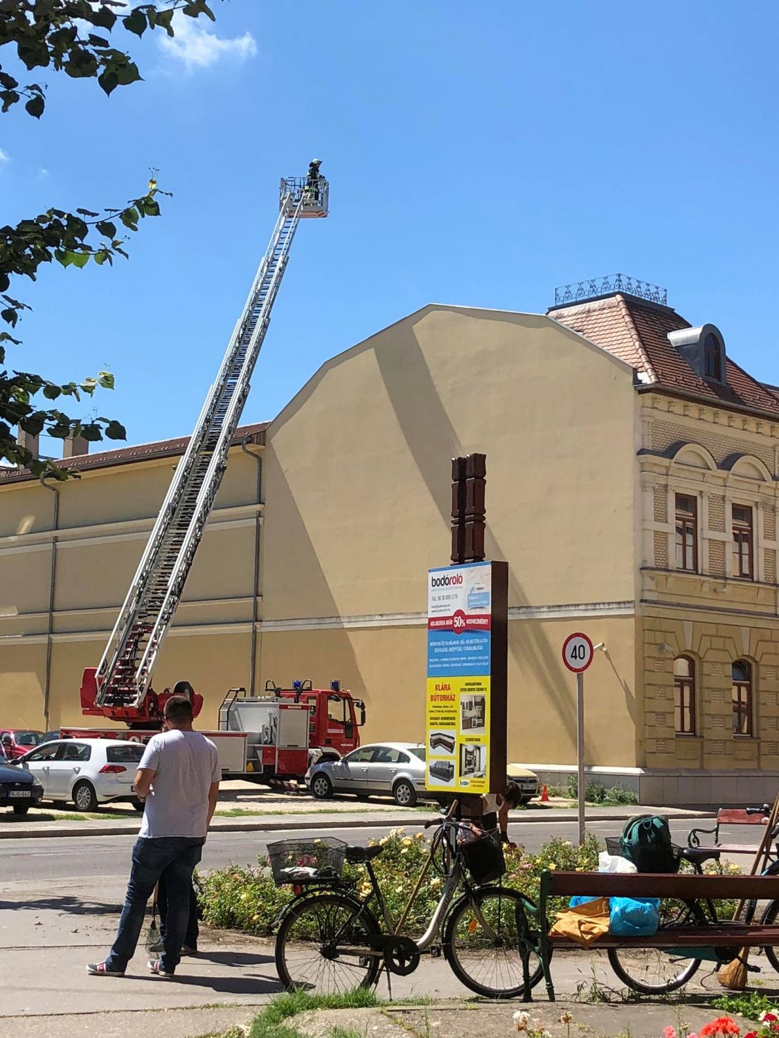 Tűzoltók a bíróságnál, teljes útzár a Kossuth utcán