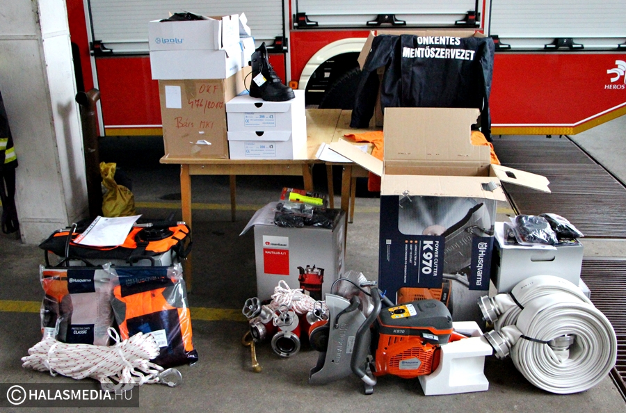 Több mint 3 millió forint értékben jutottak új eszközhöz a Kiskunhalasi Hivatásos Tűzoltó-parancsnokság illetékességi területén működő önkéntes tűzoltó egyesületek, valamint járási mentőcsapatok. Tömlő, bakancs, roncsvágó, szivattyú, speciális habkeverő és ruházat is javítja majd a szervezetek ellátottságát.