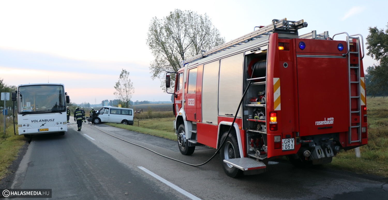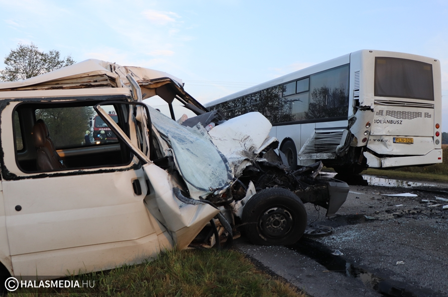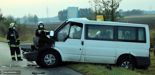 Nem sokkal a reggeli balotaszállási baleset után a Szegedi úton is súlyos baleset történt. Egy kisbusz és egy menetrend szerinti busz ütközött, előbbi jármű sofőrjét mentő szállította a halasi kórházba.