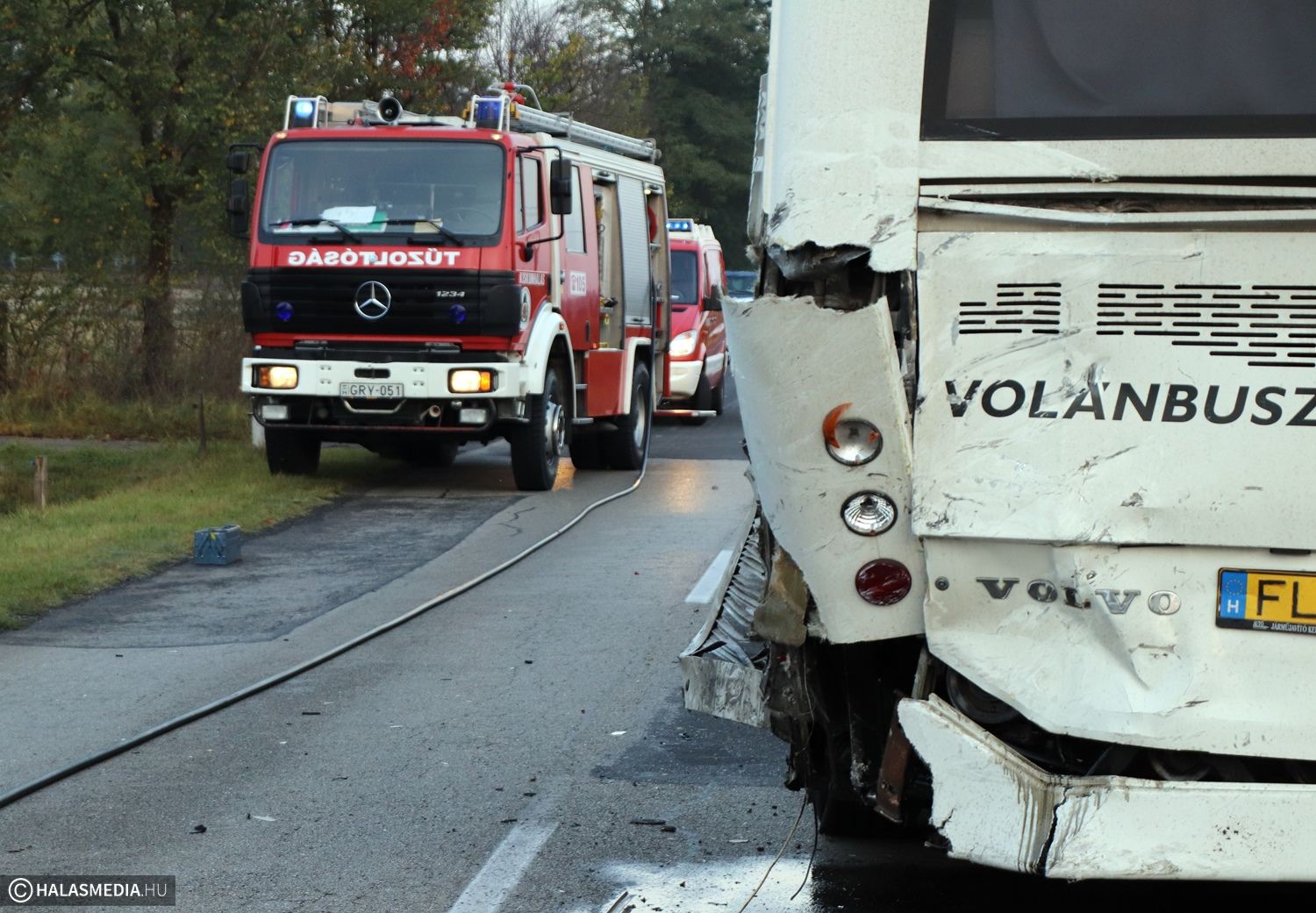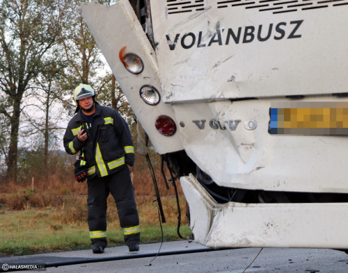 A mentők a Ford Tranzit vezetőjét a kiskunhalasi kórházba szállították. Szerencsére az autóbuszon senki sem sérült meg. A helyszínre érkeztek a halasi tűzoltók is. A helyszínelés idejére teljes útzár van. Kérjük, hogy vezessenek óvatosan!