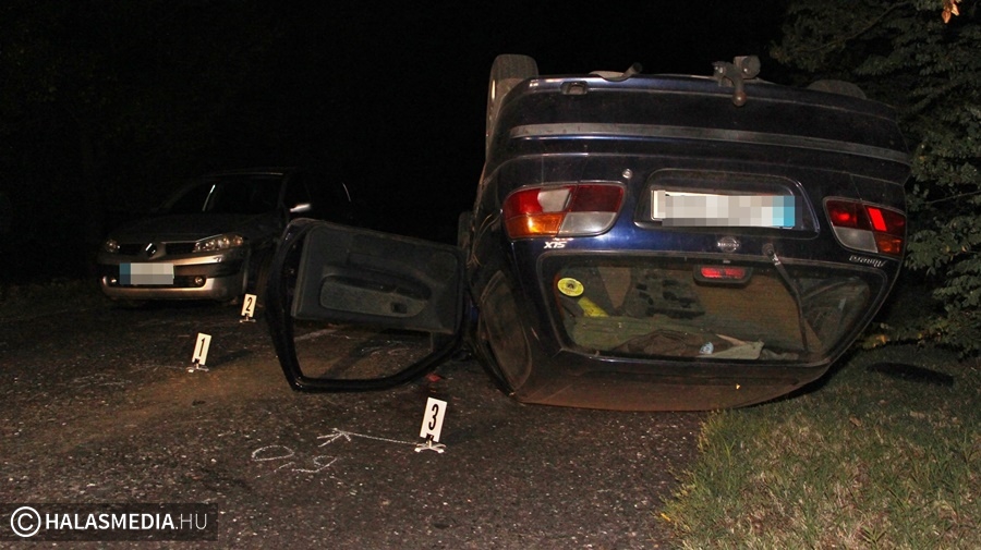 - Velem szemben, szinte az én sávomban jött, amikor megláttam, azonnal fékeztem. Már majdnem megálltam, amikor nekiment az autómnak, utána felborult a Nissan. Azonnal segítségért telefonáltam - mondta a balesetben vétlen Renault vezetője a helyszínen. Nem sokkal háromnegyed nyolc előt történt a karambol Kiskunhalas közelében, a Kecel felé vezető úton. A Nissanban egy nő és egy férfi utazott, a másik autóban is ketten ültek.