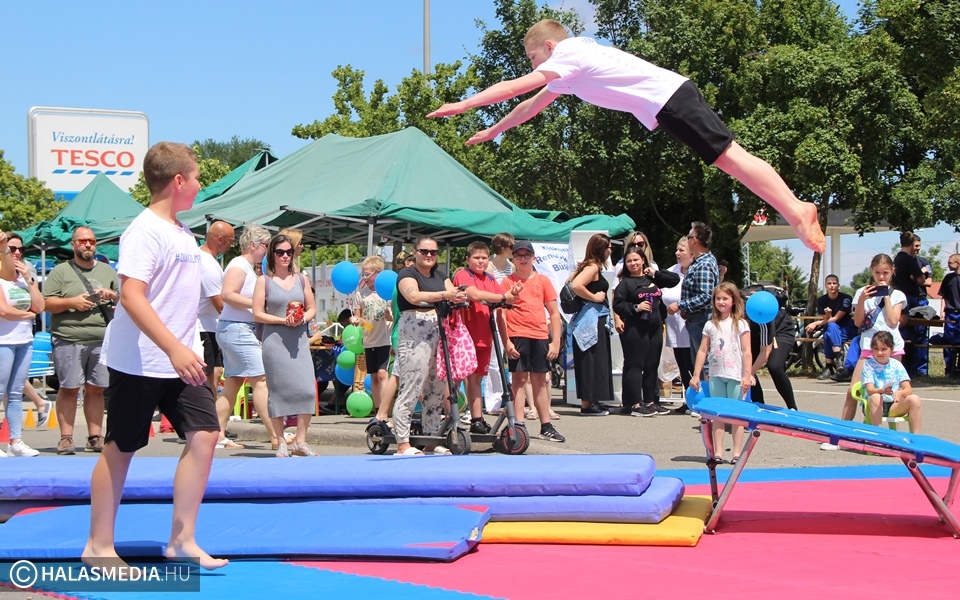 Ismét összefogott a Kiskunhalasi Rendőrkapitányság, a Készenléti Rendőrség és a kiskunhalasi Tesco Áruház. Farkasné Wodring Zsuzsanna és Varga-Balogh Diána koordinálásával egy családi napot szerveztek a hipermarket parkolójában. A rendezvénynek évtizedes múltja van. A szervezők úgy állították össze a programot, hogy minden korosztály megtalálja a neki tetszőt. Dr. Bátori Gábor alezredes, Kiskunhalas rendőrkapitánya köszöntötte a megjelenteket, a programot pedig Fülöp Róbert polgármester nyitotta meg. Eljöttek a védőnők, a Magyar Vöröskereszt Kiskuhalasi Területi Csoportjának aktivistái, a Kiskunhalasi Egészségfejlesztési Iroda munkatársai, a Magyar Autóklub szakemberei is. A Koliken Kft. jóvoltából kerékpározni lehetett, de volt ugrálóvár is. A rendőrség, a mentőszolgálat, a tűzoltóság, a honvédség pedig az eszközeiket, járműveiket mutatták be.
