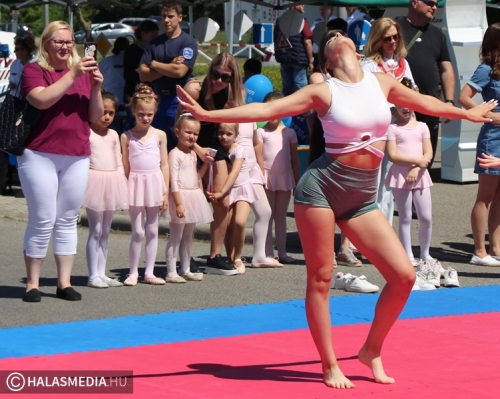 Látványos bemutatók színesítették a rendezvényt. A Kenguru ovis csoport, a Passion Dance, a Grand Up, a Kiskunhalasi Fitness Egyesület mellett a Fazekas Mihály Általános Iskola jelenlegi és volt tornászai repkedtek a gumiasztalról, a Kiskunhalasi Szakképzési Centrum Dékáni Árpád Technikumának rendész tanulói pedig önvédelmi tudásukról adtak számot. Nagy sikere volt a Juma Kutyaiskola bemutatójának, de nagy tapsot kapott a bácsalmási, speciális képzettségű rendőrkutyák showja is.