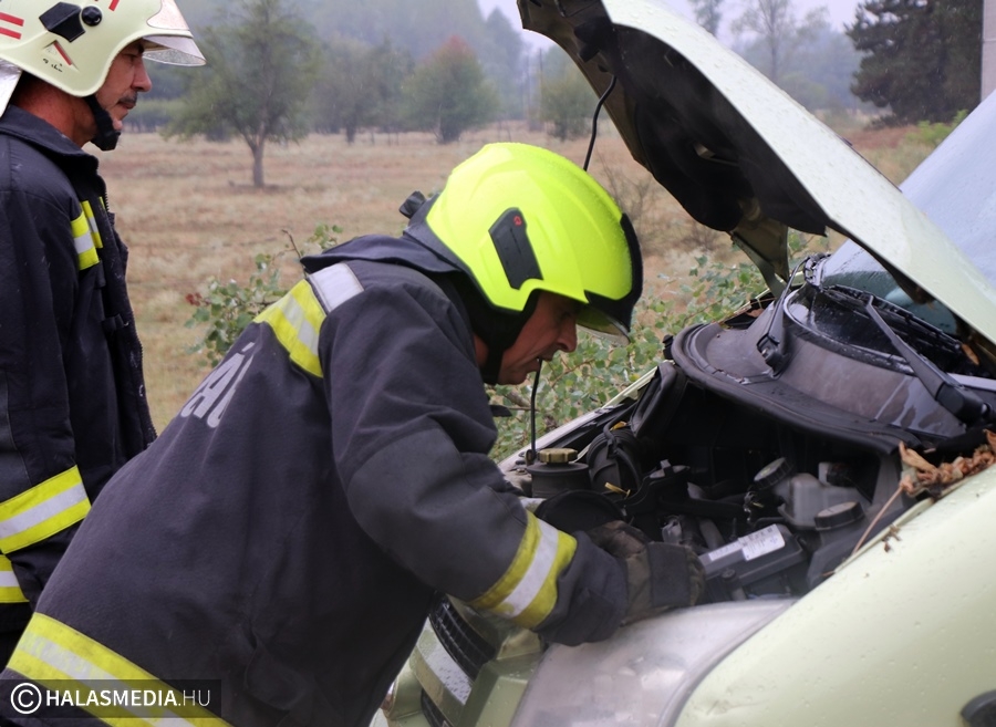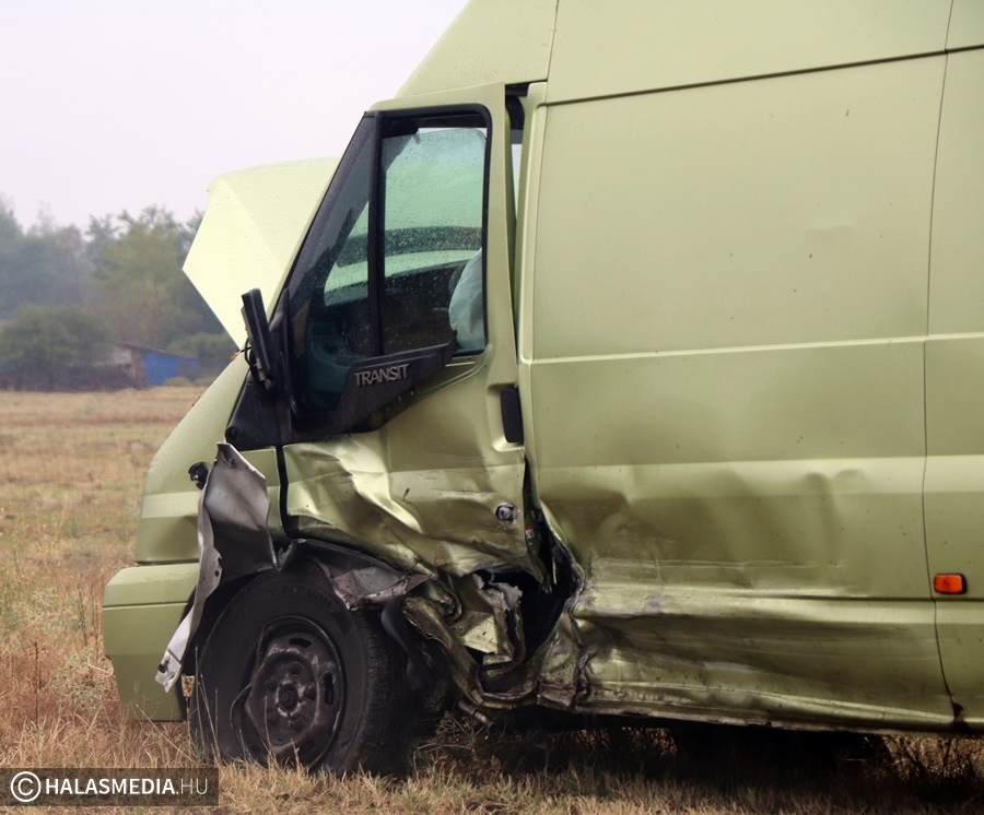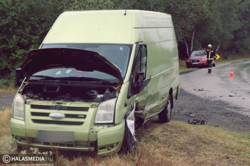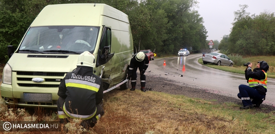 A vizes aszfalton csúszhatott meg az a Volvo, amely e miatt áttért a másik sávba és összeütközött a szemből érkező Ford Tranzittal. A személyautó Zsana felől érkezett a kanyarba. A karambol az 5408-as út hetes kilométerszelvényében történt vasárnap délután fél egy körül. A balesethez a mentők és a rendőrök mellett a kiskunhalasi tűzoltókat is riasztották. A két járműben összesen négyen voltak, a Ford sofőrje mellett ülő utast kivizsgálásra a halasi kórház sürgősségi osztályára szállították.