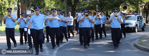 Kellemes zeneszót hallhattak azok a járókelők, akik kedden délelőtt Kiskunhalas belvárosában sétáltak vagy éppen a buszra vártak a pályaudvaron. A Készenléti Rendőrség Zenekara masírozott végig a városközponton a Hősök terétől egészen a Május 1 térig. A hangulatos muzsikaszó egyben felhívás is volt arra, hogy alkalmi torborzópontot működtet a rendőrség, amelynél a szerződéses határvadász hivatás iránt érdeklődőket várták. A zenekar is azért jött, hogy a régi hagyományokat felelevenítve, zenével toborozzák az új hadfikat határaink védelmére.