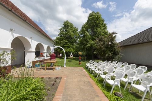Udvar területe: 1320 m2, pajtával együtt 50 fő férőhely